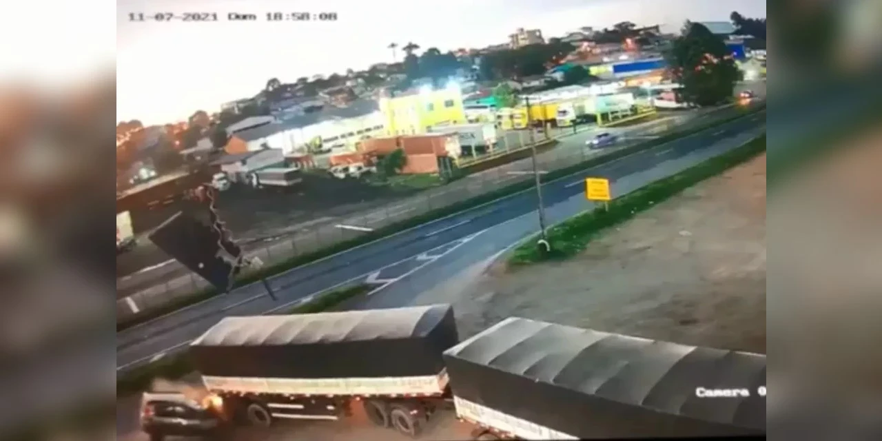 Uma câmera de segurança registrou o momento do acidente, no domingo (7).