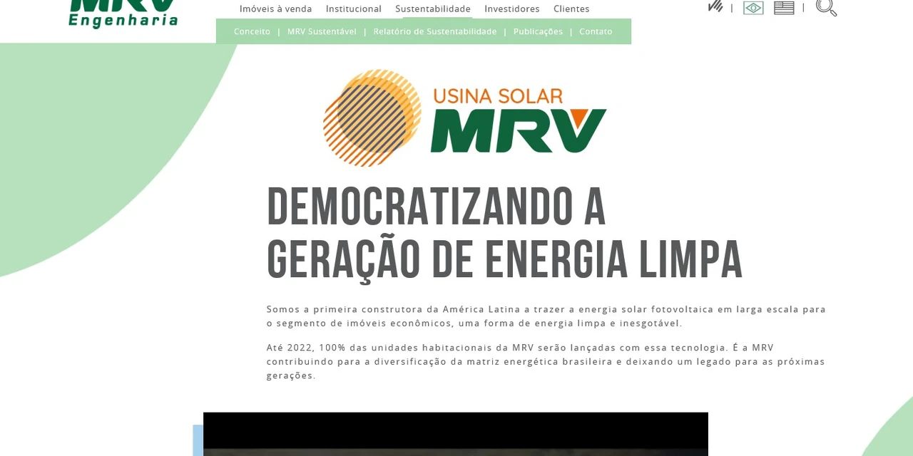 www.mrvsolar.com.br), uma plataforma que conta com dados atualizados em tempo real sobre economias e benefícios sustentáveis que são proporcionados pela energia solar fotovoltaica nos empreendimentos da construtora. O lançamento nesta data simbólica representa o avanço do investimento da companhia na tecnologia, que prevê totalidade de lançamentos de empreendimentos autossuficientes em energia elétrica nas áreas comuns até o fim de 2022. A MRV está investindo cerca de R$ 800 milhões neste modelo como forma de promover a democratização da produção de energia limpa, que está se tornando mais acessível nos últimos anos.