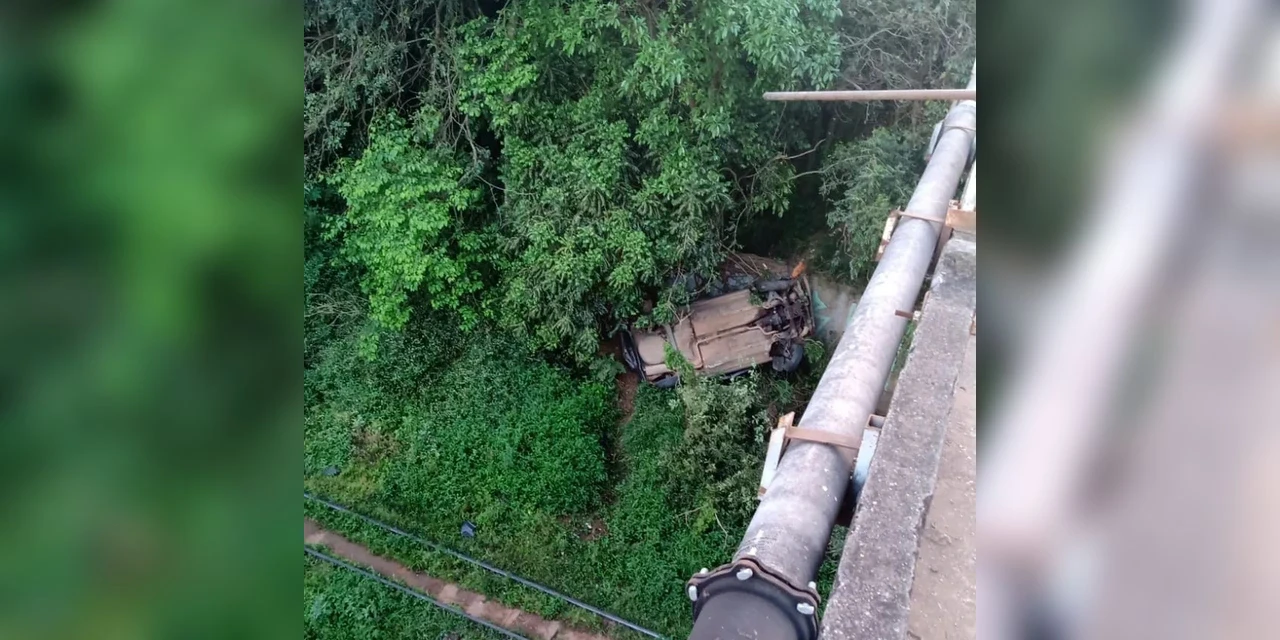 Segundo o Corpo de Bombeiros, além dela, outra mulher seguia no veículo. Ela teve ferimentos leves por conta da queda, de aproximadamente 8 metros de altura.