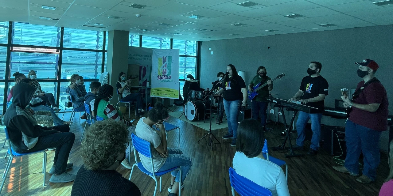 COM ASSESSORIAS - Há cinco anos, o projeto Música para Todos leva música e conhecimento da arte da música para crianças e adolescentes que são atendidos pela Vara da Infância e Juventude de Ponta Grossa. Hoje, dia 5, às 14 horas, será realizado o primeiro evento presencial do projeto desde o início da pandemia. O encontro será no Centro de Música, ao lado da Biblioteca Pública Municipal Profº Bruno Enei. O projeto tem patrocínio da Belgotex e incentivo do Programa Municipal de Incentivo Fiscal à Cultura (PROMIFIC).
