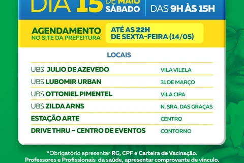 Os professores e profissionais da saúde devem levar comprovante de vínculo com instituição de trabalho, além do documento com foto e carteira de vacinação. Os idosos com mais de 60 anos, que tomaram a vacina contra a Covid-19, devem prestar atenção no intervalo das doses.