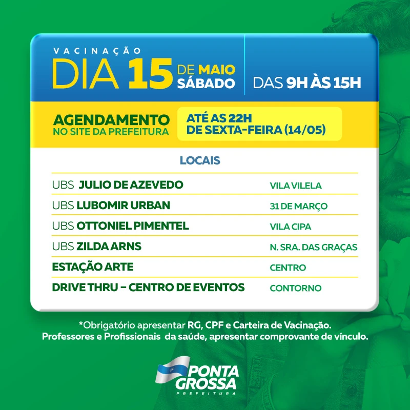 https://fms.pontagrossa.pr.gov.br/vacinacao/). O cadastro para vacinação no mutirão ficará online até as 22h de sexta-feira (14).