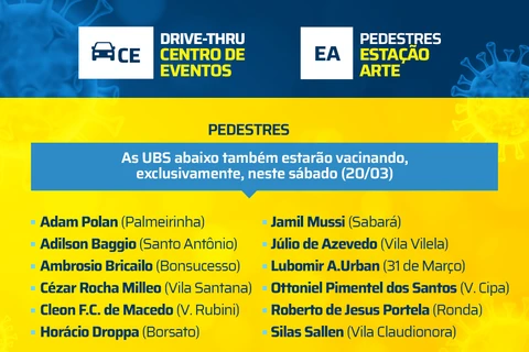 "Nós escolhemos as UBS que já contam com salas de vacina e que estão localizadas de forma estratégica. Ao todo serão 14 locais vacinando. Teremos equipes suficientes em todos eles para vacinar e auxiliar as pessoas que estiverem chegando", destaca o secretário de Saúde, Dr. Rodrigo Manjabosco.