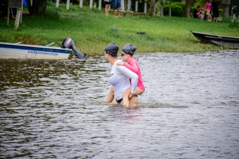 A participante mais nova do evento tem 8 anos e a mais velha 60 anos. “Foi um obstáculo que tanto eu quanto a Tainá precisávamos quebrar e experimentar essa nova experiência. E digo que adoramos, muito mais que o esperado. No começo a Tainá ficou insegura, mas a professora foi com ela incentivando o que foi de extrema importância esse carinho, incentivo e atenção com ela. Assim venceu o medo, acredito que logo estaremos competindo em águas abertas juntas também”, relata Talise Manosso, mãe da atleta Tainá Manosso de 8 anos.