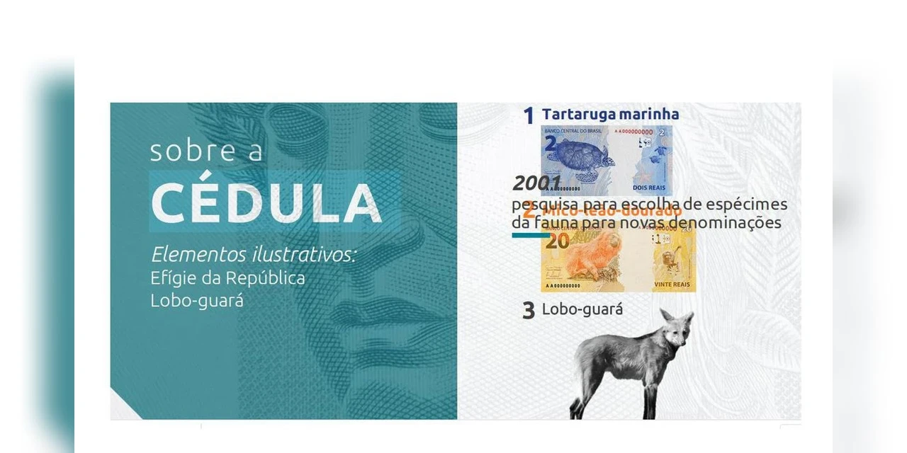 O lobo-guará foi escolhido em pesquisa realizada pelo BC em 2001 para eleger quais espécies da fauna brasileira deveriam ser estampadas nas cédulas do país. No site do BC, há mais informações sobre a nova cédula.