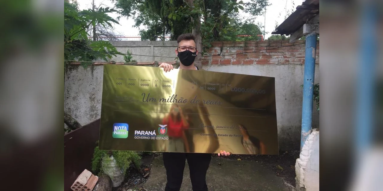 O curitibano Rafael S, de 19 anos, se preparava para mais um dia de trabalho num supermercado da capital nesta quarta-feira (13) quando a equipe do Nota Paraná bateu em sua casa para entregar o cheque simbólico de R$ 1 milhão – principal prêmio do sorteio deste mês.