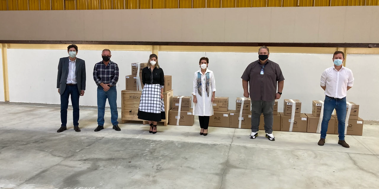 COM ASSESSORIAS - Na última sexta-feira (9), no Centro de Eventos, o Conselho de Desenvolvimento Econômico de Ponta Grossa (CDEPG) juntamente com a Prefeitura Municipal de Ponta Grossa e a 3ª Regional de Saúde recebeu a doação de kits de equipamentos Unidades de Terapia Intensiva (UTI), vindas por entidades e empresas de Ponta Grossa. Foram entregues mais 11 kits, que foram destinados para o Hospital Municipal Amadeu Puppi e para a Santa Casa de Misericórdia. Ao todo, foram doados por empresas e entidades 18 kits que contam com respiradores, monitores e ventiladores e as doações são de aproximadamente R$ 1,3 milhão em equipamentos.