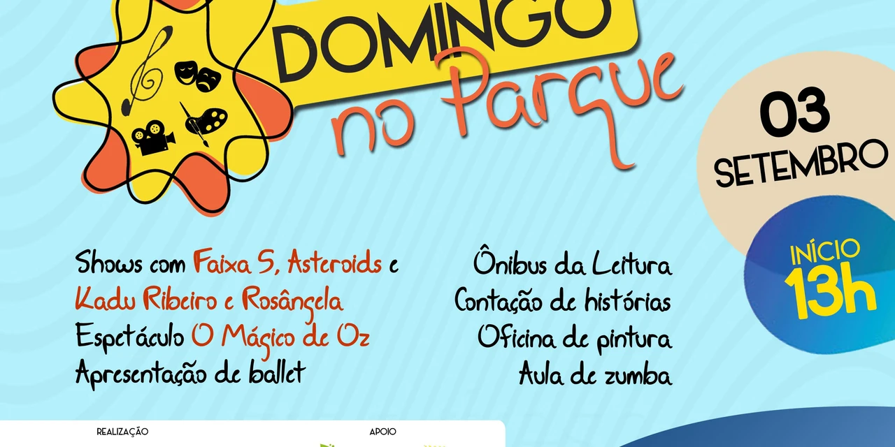 A música será por conta das bandas Faixa 5 (samba-rock) e Asteroids (anos 80), e da dupla Kadu Ribeiro & Rosângela. O evento terá ainda a apresentação do espetáculo de teatro infantil ‘O Mágico de Oz’, do Grupo Paral’elos’; presença do Ônibus da Leitura, com diversas sessões de contação de histórias e centenas de livros disponíveis; oficina de pintura e desenho e Aulão de Zumba.
