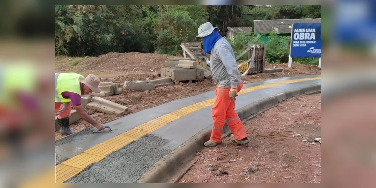 COM ASSESSORIAS - Importantes obras estão em andamento em Ponta Grossa, no mês de julho. Entre a Vila Clóris e Vila Princesa, no bairro de Uvaranas, mais de R$ 1 milhão estão sendo investidos em infraestrutura. Ao todo, são sete quadras, em aproximadamente 540 metros lineares, que recebem sistema de drenagem, passeios e calçadas, bem como o asfalto. A previsão é de aproximadamente 30 dias para a conclusão.