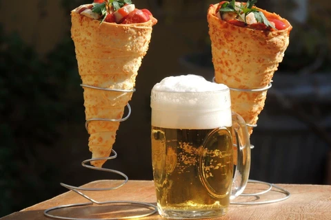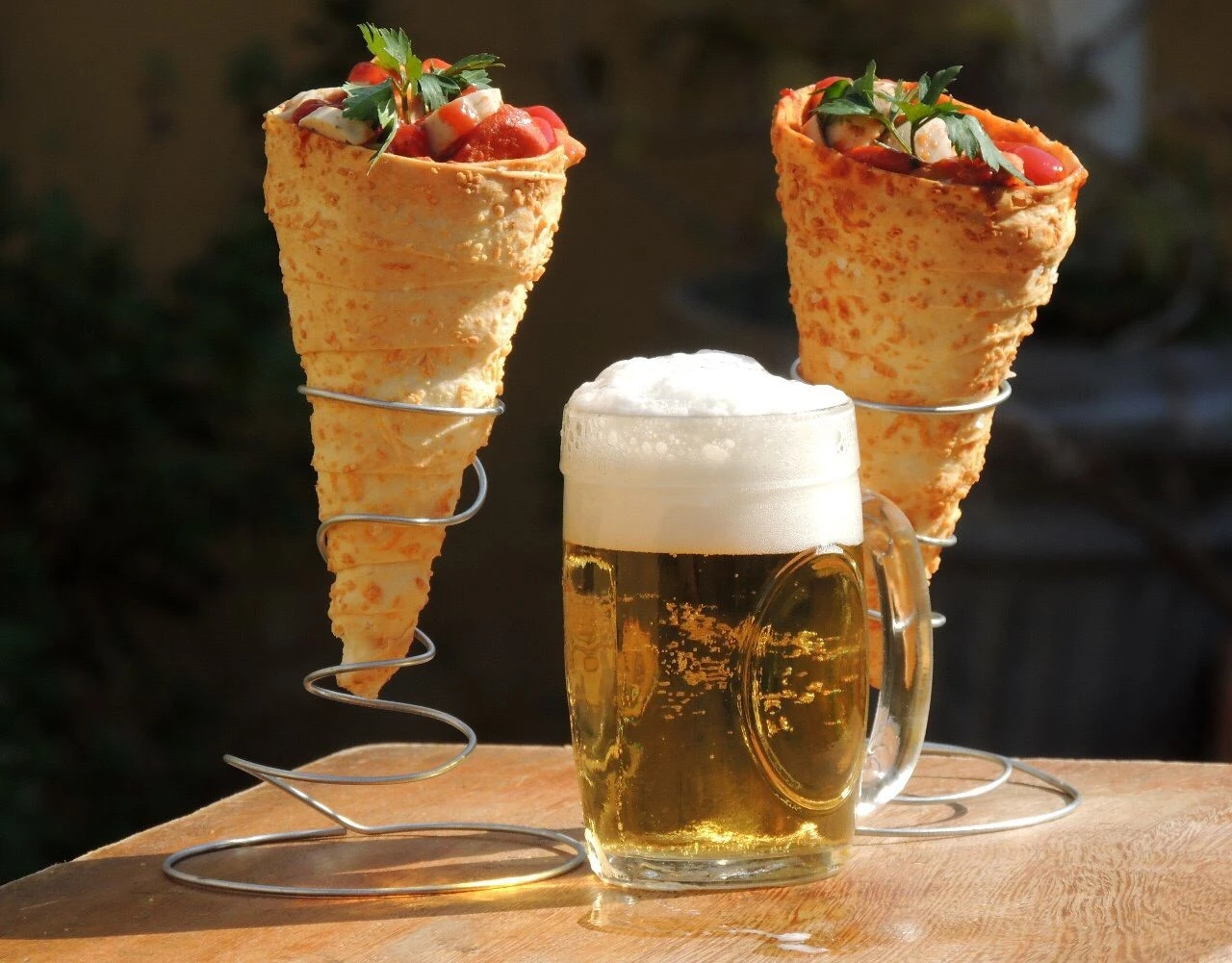 A Gastronomia no Cone, com duas opções, o cone alemão: casquinha crocante de parmesão assado, recheado com mix de salsichas alemãs, com molho curry salce e o cone mexicano: casquinha crocante, tipo tortilha, recheado com chilli de carne com queijo cheddar, ambos saem por R$ 15,00 cada.