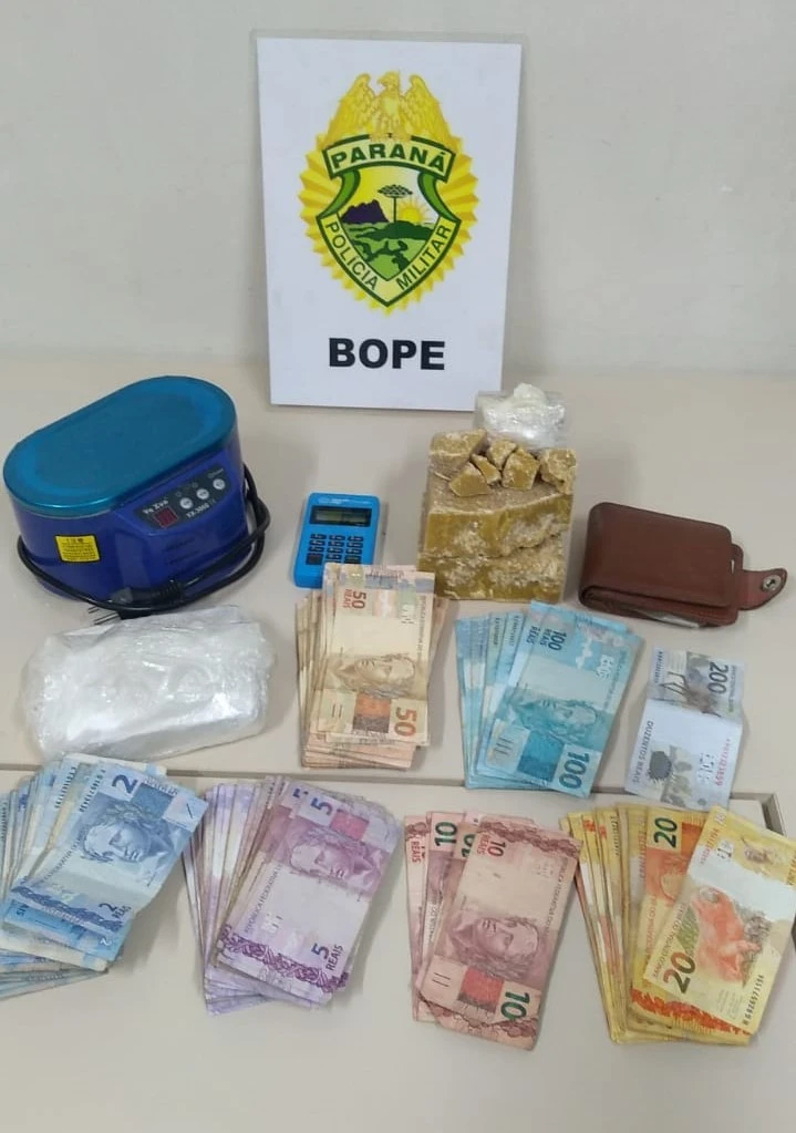 Na casa do condutor do automóvel, de 25 anos, localizada também no bairro Uvaranas, foram encontradas e apreendidas mais 995 gramas de crack, meio quilo de cocaína, dinheiro, uma balança de precisão e um rádio comunicador.