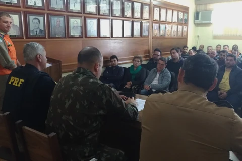 COMUNICAÇÃO SOCIAL /1º BPM - Na tarde de hoje (29), realizou-se no Quartel do 1º BPM, reunião para tratar de operação envolvendo o Exército Brasileiro, o Primeiro Batalhão de Polícia Militar, a Polícia Rodoviária Federal, a Polícia Rodoviária Estadual, a Guarda Municipal e a Defesa Civil do Município, a fim de restabelecer o abastecimento de postos de combustíveis da cidade de Ponta Grossa.