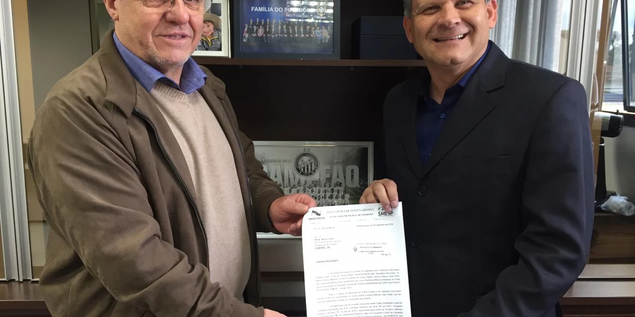 Danilo Kravchychyn/Ponta Grossa - Um encontro nesta segunda-feira (2) do secretário Marco Antonio Macedo (Esportes e Recreação) e o presidente da Federação Paranaense de Futebol, Hélio Cury, marcou o início da luta do Operário Ferroviário para participar da Copa São Paulo de Futebol Júnior em 2020. Na oportunidade foi protocolado o ofício para que a Federação Paranaense oficialize junto à Federação Paulista o pedido do alvi-negro para que seja um dos representantes paranaenses na principal competição do futebol de base do Brasil, assinado pelo presidente do grupo gestor, Álvaro Góes Filho, e pelo próprio Macedo.