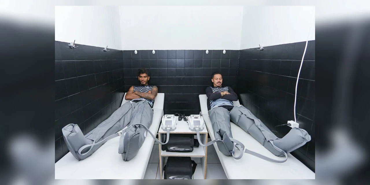 “É uma bota pneumática, que faz uma espécie de drenagem linfática nos membros inferiores dos atletas. Ele é composto por quatro camadas: a do pé, a da panturrilha, a do joelho e a da coxa. O aparelho infla e desinfla, fazendo uma pressão do pé até a coxa, aumentando o fluxo sanguíneo na região e acelerando o processo de recuperação. O grande objetivo é evitar lesões, fazendo com que o atleta se sinta menos cansado para fazer os treinamentos durante a semana”, detalha Lucas.