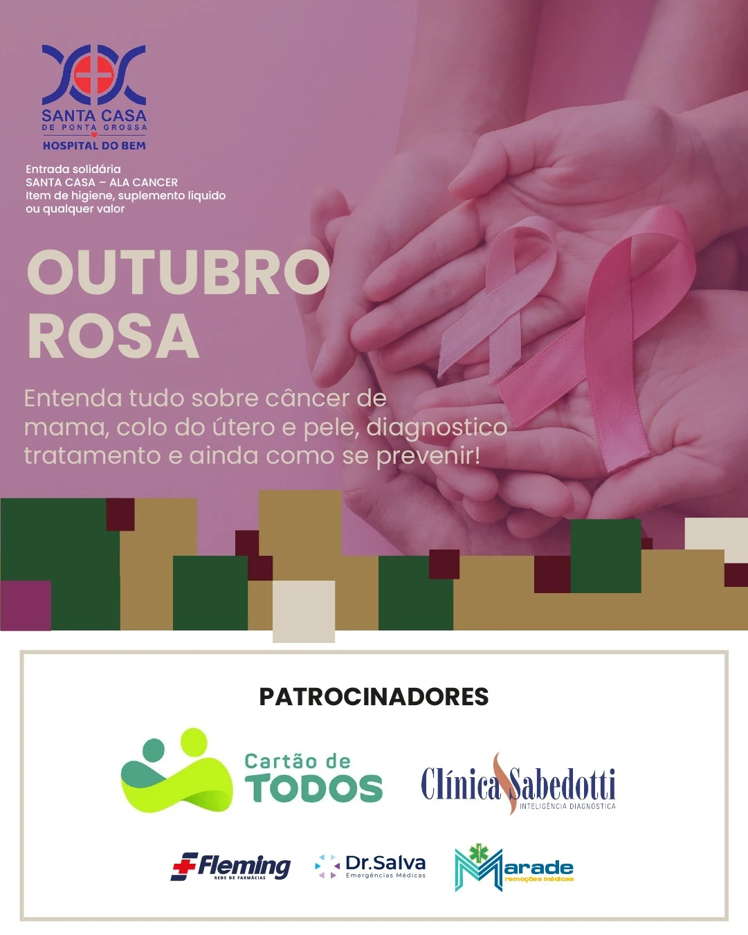 A ação do Outubro Rosa será na sede da ACIPG (Visconde de Taunay, 1855) é um evento gratuito, mas quem quiser pode fazer doações de itens de higiene, suplemento líquido ou qualquer valor. As doações serão revertidas para ala do câncer da Santa Casa de Ponta Grossa de Ponta Grossa. As inscrições podem ser feitas pelo