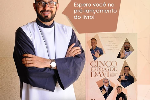 COM ASSESSORIAS - O padre Pedro Cláudio Mendes, pároco da Paróquia Santa Rita de Cássia, em Ponta Grossa, dará um dos quatro testemunhos sobre vocação e missão contados no livro ‘As cinco pedras de Davi, histórias reais de fé e amor pela missão católica’, de Thaisa Sallum Bacco e Roberto Mancuzo Junior. A obra tem 168 páginas e narra ainda as trajetórias de Dunga, Irmã Zélia, Astromar Braga e Rodrigo Ferrera.