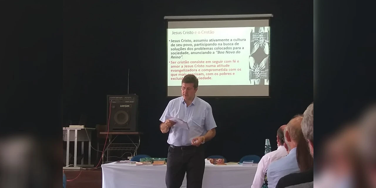 COM ASSESSORIAS - Ao enumerar os principais documentos que abordam a Doutrina Social da Igreja e destacar que ela se vale também de pronunciamentos, artigos, encontros e movimentos populares para se posicionar, padre Leomar Montagna resumiu a D.S.I como ‘uma experiência de fé com opção pelos mais fragilizados da sociedade’. O sacerdote da Arquidiocese de Maringá falou, no sábado (26), durante o Ciclo de Palestras promovido pelo Conselho Diocesano do Laicato de Ponta Grossa e Cáritas, abordando ‘A Doutrina Social da Igreja e o Pronunciamento do Magistério da Igreja em Relação às Questões Sociais’. O bispo dom Sergio Arthur Braschi, políticos, professores universitários e integrantes de pastorais e organismos da diocese acompanharam a exposição.