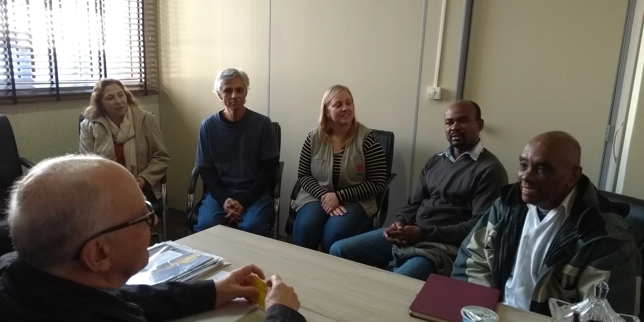 COM ASSESSORIAS - O padre Joseph Philippe, sacerdote há 30 anos na Congregação do Espírito Santo, dedica-se a ajudar o povo do Haiti a se organizar e transformar sua vida. Para isso, criou quatro organizações, de 1988 a 2004, voltadas à reconstrução do país: a Associação dos Camponeses de Fondwa, Fonkoze (o maior banco do Haiti para os pobres), Congregação das Irmãs de Santo Antônio e a Universidade de Fondwa. Os detalhes de sua trajetória foram mostrados em uma conferência, nesta quarta-feira (20), no Espaço Cultural Sant’Ana e, antes, ao bispo da Diocese de Ponta Grossa, dom Sergio Arthur Braschi, em uma audiência durante a tarde.