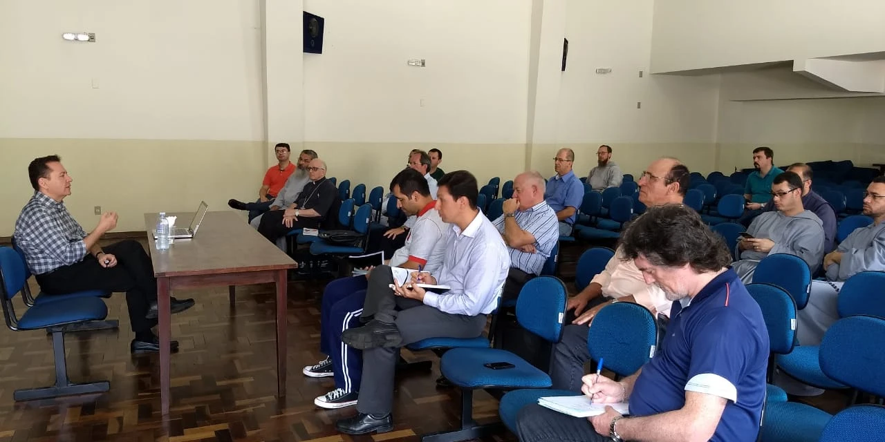 COM ASSESSORIAS - O grupo de reflexão teológica da Diocese de Ponta Grossa promoveu, nesta sexta-feira (30), um encontro do clero com o padre José Rafael Solano Durán, pároco da Catedral Metropolitana de Londrina, mestre e doutor em Teologia Moral pela Pontifícia Universidade Gregoriana de Roma e pós-doutorado em Teologia Moral e Familiar pelo Pontifício Instituto João Paulo II de Roma, Universidade Lateranense de Roma. O padre falou ao bispo dom Sergio Arthur Braschi, sacerdotes, diáconos permanentes e seminaristas sobre Ideologia de Gênero.