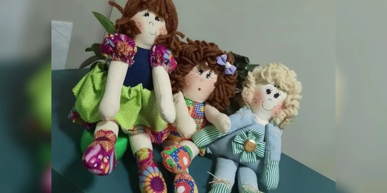 A cada boneca de pano produzida, a artesã Marta Ferreira faz uma publicação em uma rede social. O lance inicial pelo trabalho é de três quilos em alimentos.