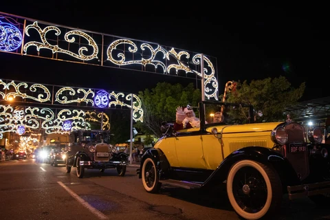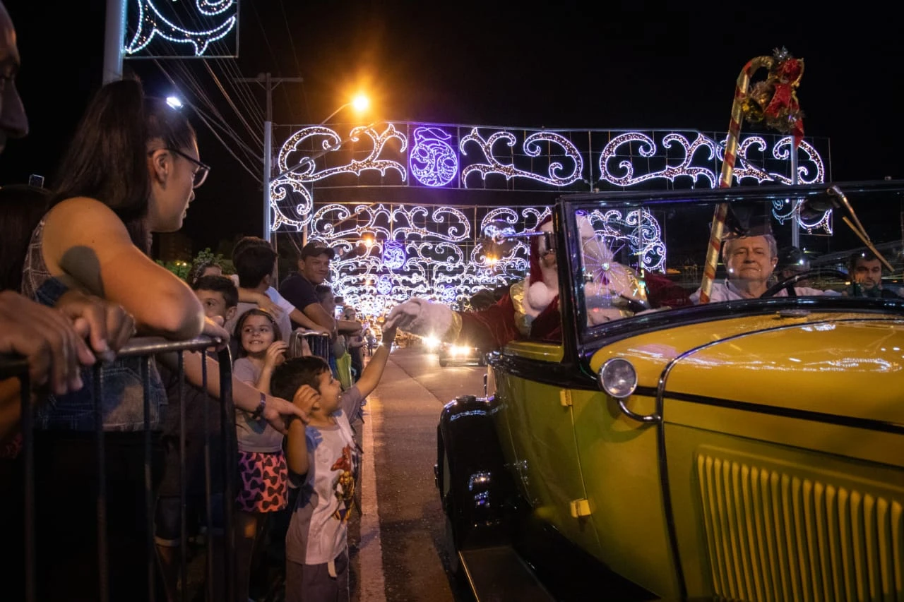 Pouco antes das 21h chegou o Papai Noel, que veio em um Ford Coupe da década de 30, acompanhado da Lataria Brass Band. Eles abriram a carreata que contou com dezenas de veículos. Logo em seguida se apresentaram o Grupo de Teatro e o Coro Cidade de Ponta Grossa.