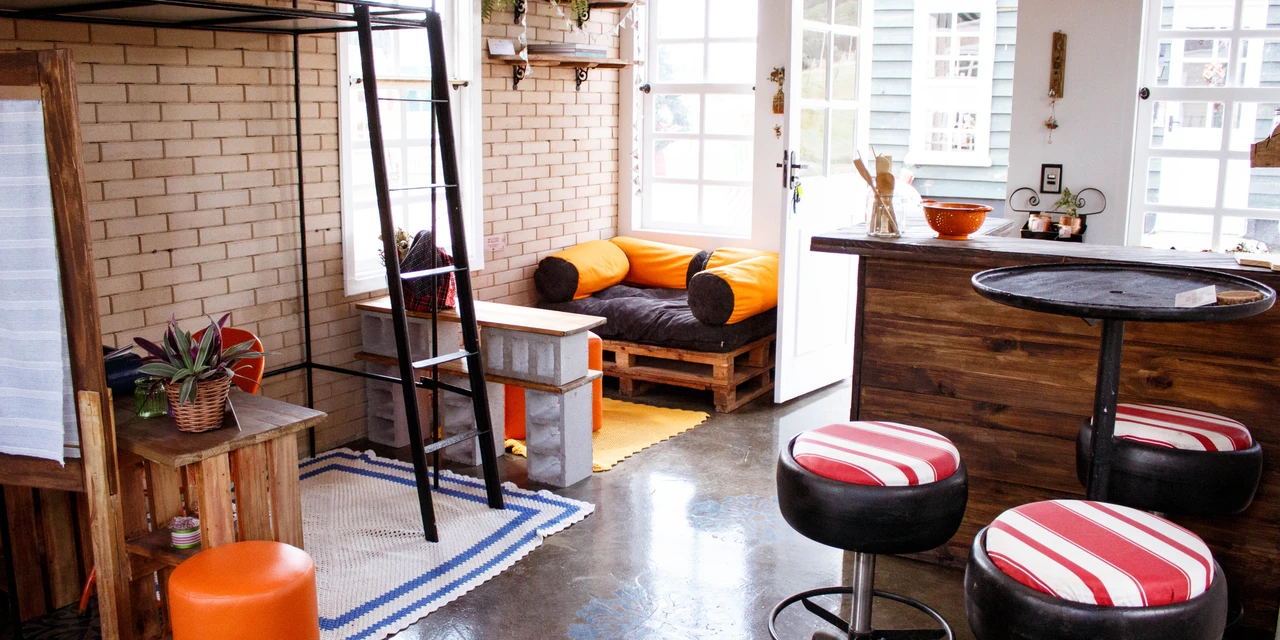 O ambiente foi reestruturado e mostra formas criativas e simples de reaproveitamento de materiais. Baseado no conceito de loft, o espaço é versátil e não possui divisórias com paredes, com aproximadamente 25 metros quadrados possui sala de estar, cozinha, quarto, escritório e banheiro.