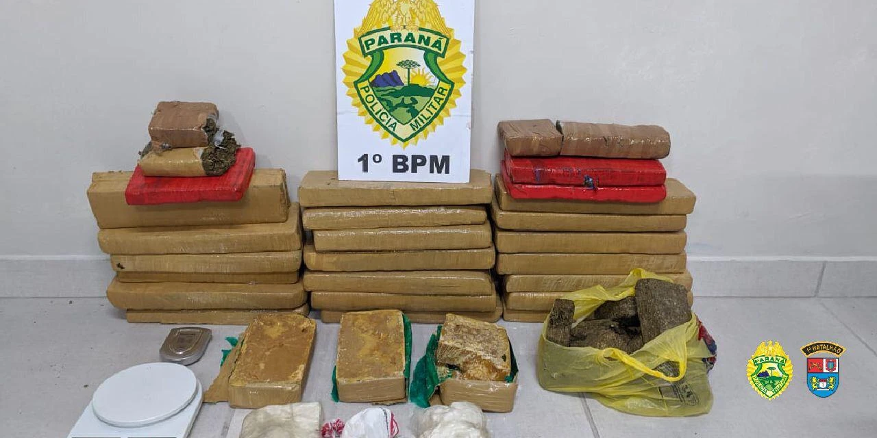 Ao revistar o veículo, os policiais encontraram várias porções de cocaína. A equipe então seguiu para a casa de um dos abordados e localizou mais drogas no local. No total, o Pelotão de Choque apreendeu 948 gramas de cocaína, 29,8 quilos de maconha, 2,6 quilos de crack e dinheiro.