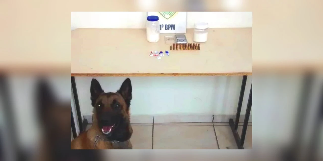 Com a ajuda de um cão farejador, a equipe encontrou nove porções embaladas de cocaína e 31 munições calibre 380, além de outras 250 gramas da mesma droga em uma área de mata ao lado da residência localizada na Rua Carlos Chagas.