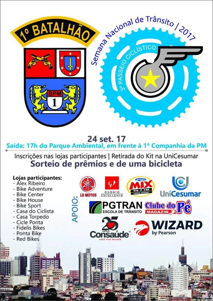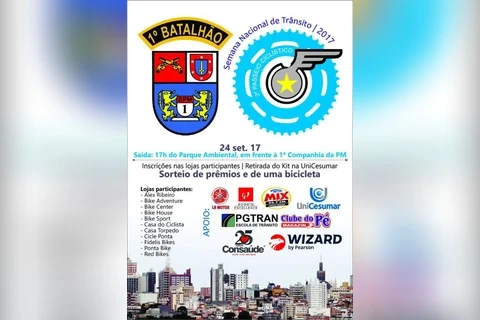 Integrando a Semana Nacional de Trânsito, o 1º Batalhão de Polícia Militar promoverá no próximo domingo (24) o 3º Passeio Ciclístico do Pelotão de Trânsito.