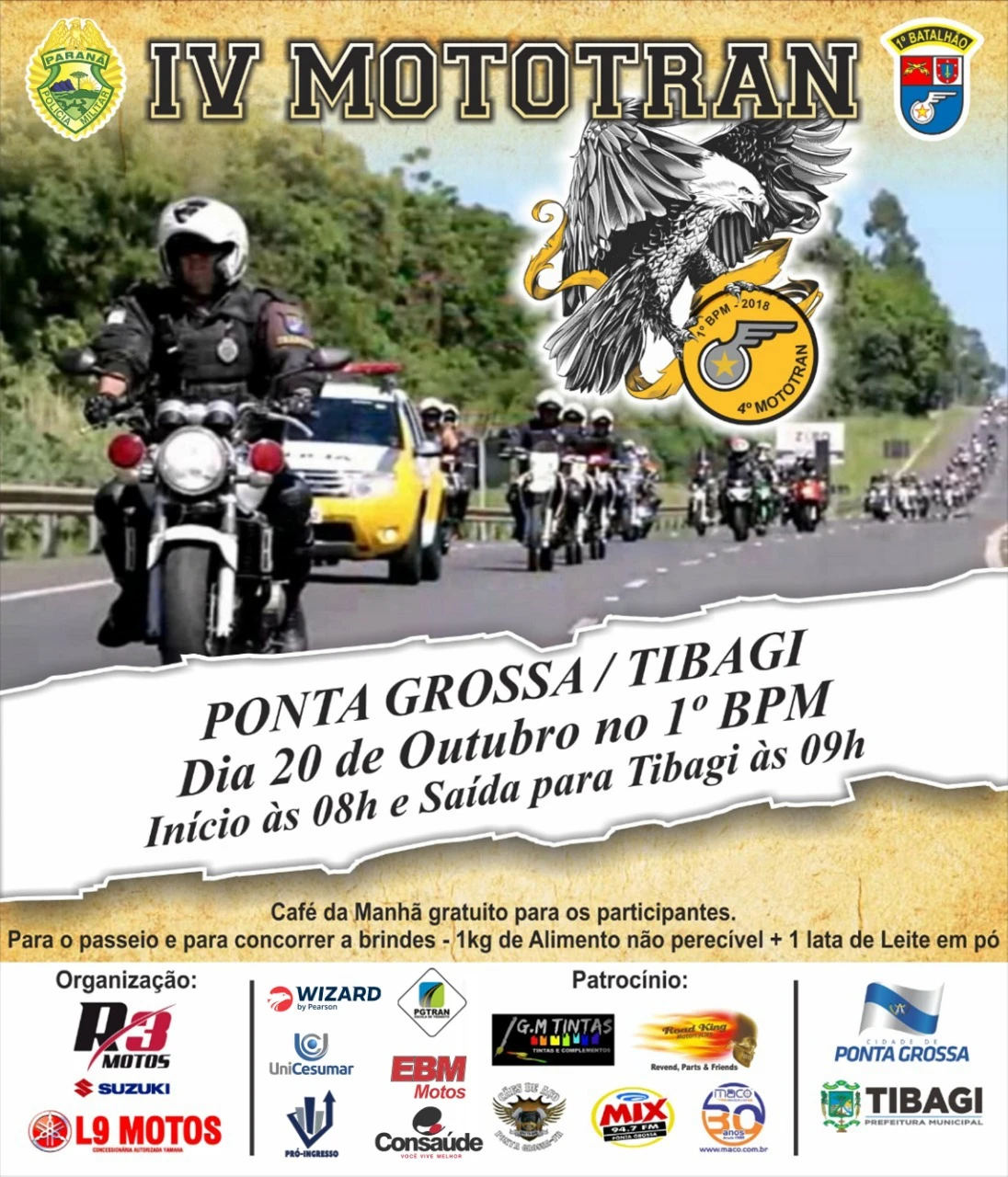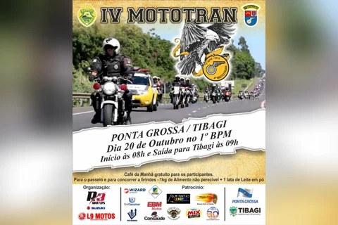 A concentração de motociclistas acontecerá à partir de 8h, na sede do 1º BPM, à Rua Professor Cardoso Fontes, nº 985, Ronda, Ponta Grossa, com direito a café da manhã gratuito para os participantes.