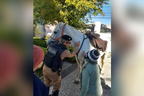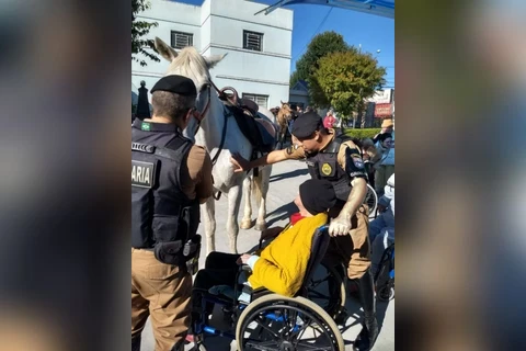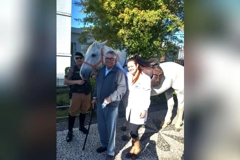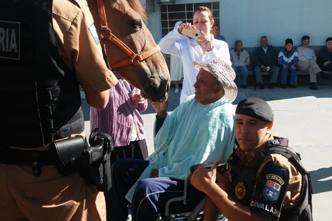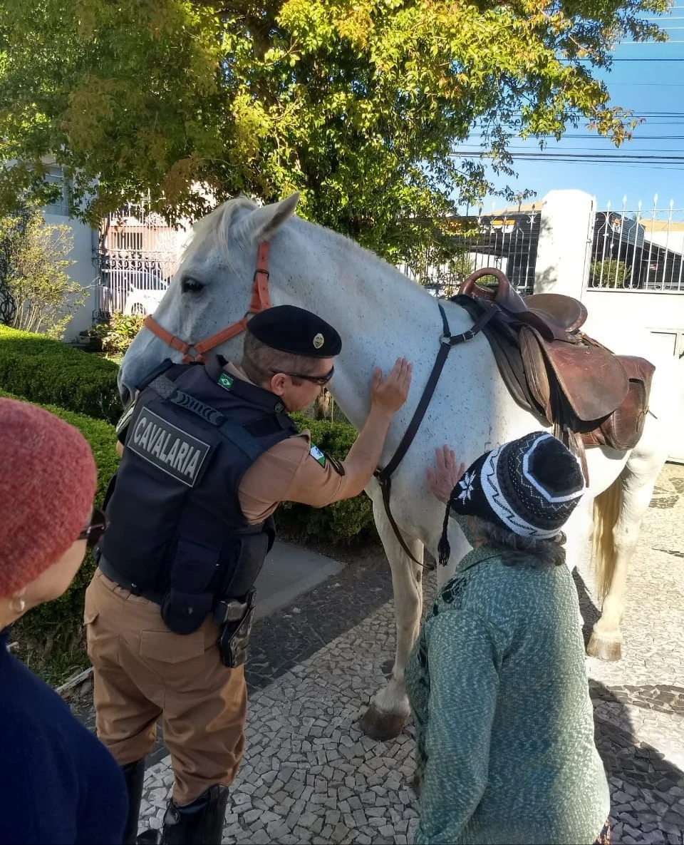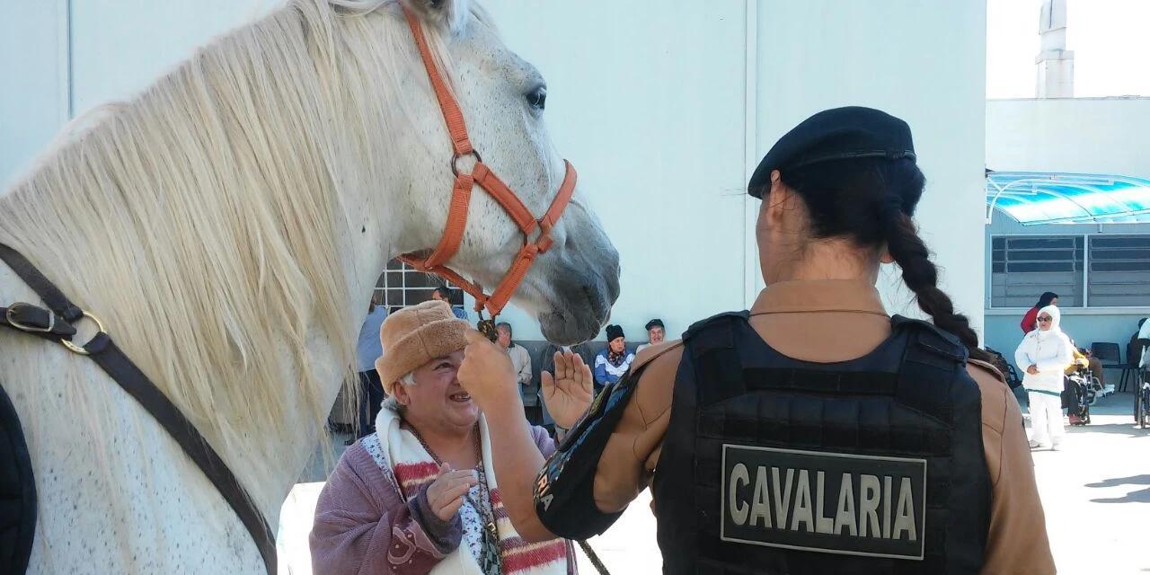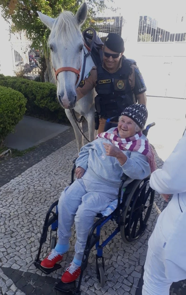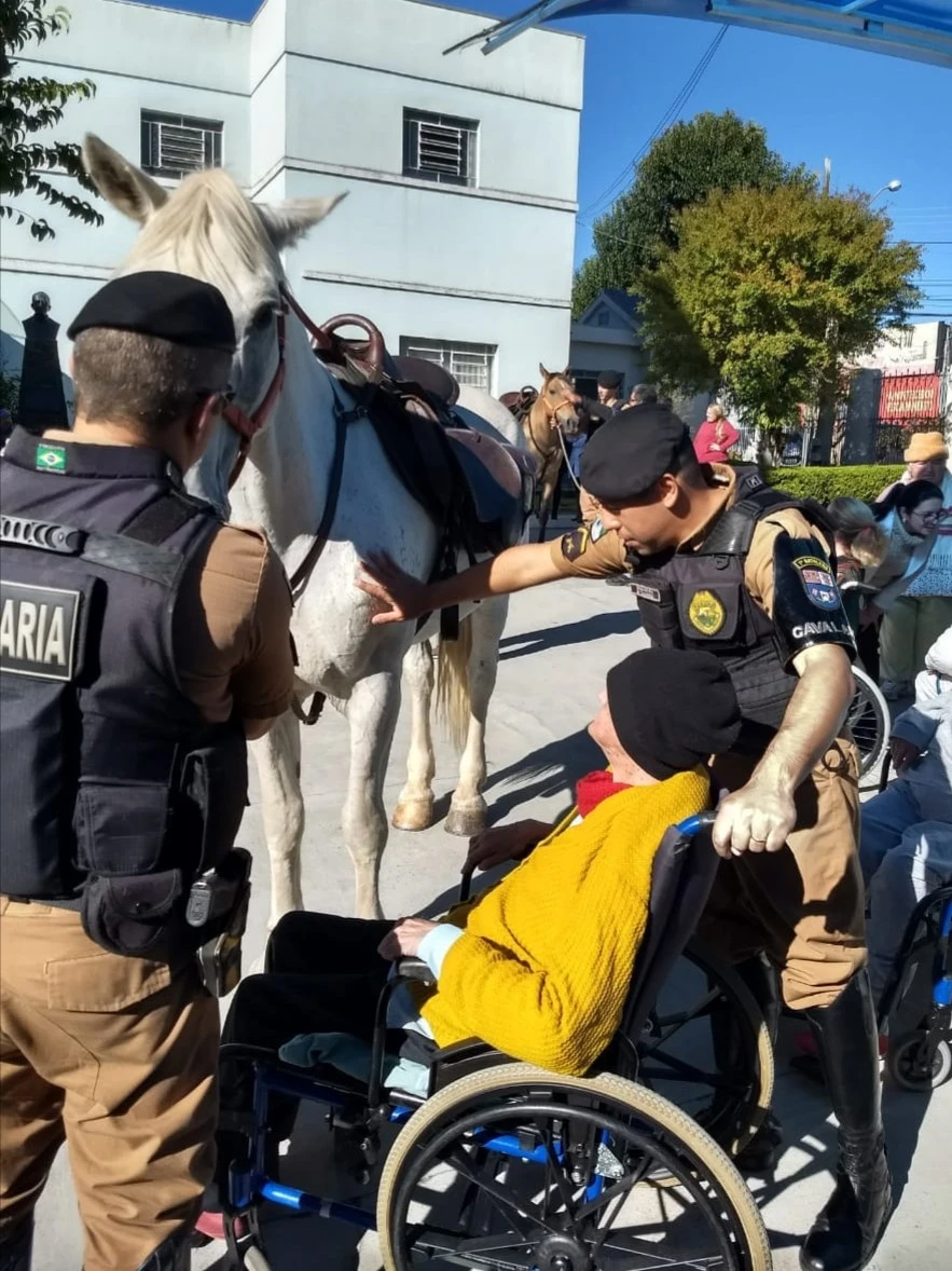 COMUNICAÇÃO/1º BPM - Os moradores do Asilo São Vicente de Paulo, em Ponta Grossa/PR, receberam a visita de Policiais Militares do Pelotão de Cavalaria do 1º Batalhão de Polícia Militar.