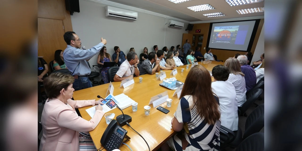 Millena Sartori/Ponta Grossa - Foi realizada na tarde desta terça-feira (13) uma reunião para a apresentação do projeto Quali&Tec, iniciativa promovida através de uma parceria entre a Prefeitura Municipal, através da Secretaria de Indústria, Comércio e Qualificação Profissional (SMICQP), Núcleo Regional de Educação (NRE), Faculdade Sant’Ana, Senac, Senai e Associação Comercial, Industrial e Empresarial de Ponta Grossa (ACIPG). O programa foi iniciado no mês passado, é voltado à empregabilidade e já atendeu mais de 1,6 mil alunos dos ensinos médio e técnico.