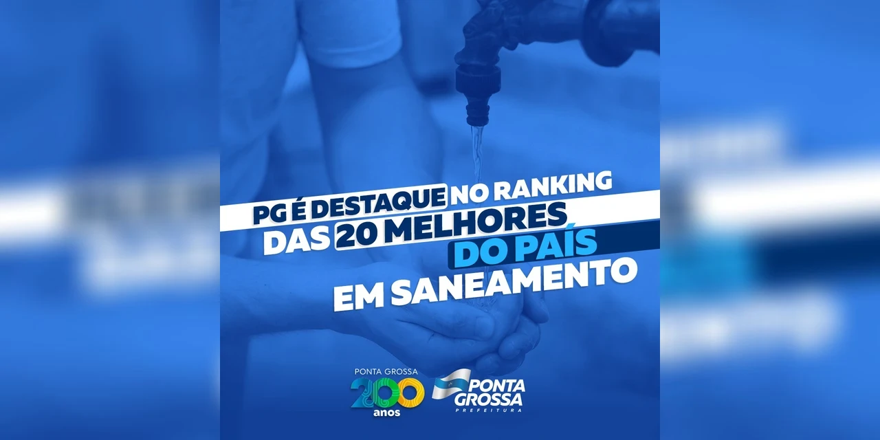 COM ASSESSORIAS - Ponta Grossa é um dos destaques no Ranking do Saneamento dos 100 maiores municípios do Brasil, divulgado pelo Instituto Trata Brasil. O município ficou entre as 20 com os melhores indicadores do país. Em sua 15ª edição, o ranking também coloca outras cinco cidades do Paraná entre as melhores: Cascavel, Curitiba, Londrina, Maringá e São José dos Pinhais.