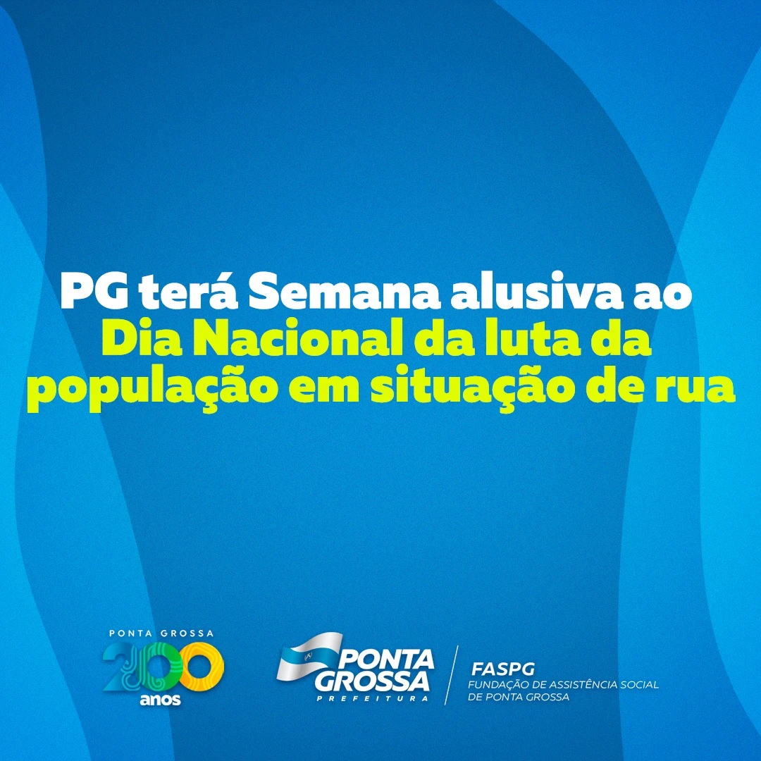 COM ASSESSORIAS - A Fundação de Assistência Social de Ponta Grossa promove, entre os dias 14 e 18 de agosto, uma Semana de Atividades alusivas ao Dia Nacional da Luta da população em situação de rua. A data é celebrada em todo o país no dia 19 de agosto em memória das vítimas do "Massacre da Sé", quando no ano de 2004 sete pessoas foram assassinadas e oito ficaram gravemente feridas enquanto dormiam na região da Praça da Sé, na capital paulista.