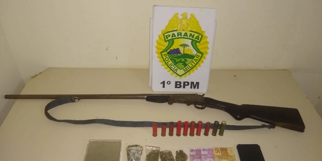 O rapaz tentou fugir e correu para dentro de uma residência, quando foi abordado. Durante revista na casa, os policiais encontraram 55 gramas de maconha, balança de precisão, dinheiro e uma espingarda calibre 28. O homem, de 31 anos, foi preso em flagrante e levado para a delegacia.