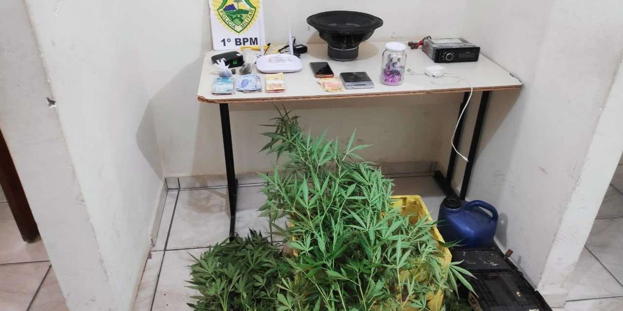 Os policiais foram até a casa do rapaz, na rua Toledo, e encontraram 21 pés de maconha plantados no terreno e outros produtos que o jovem não explicou a procedência.