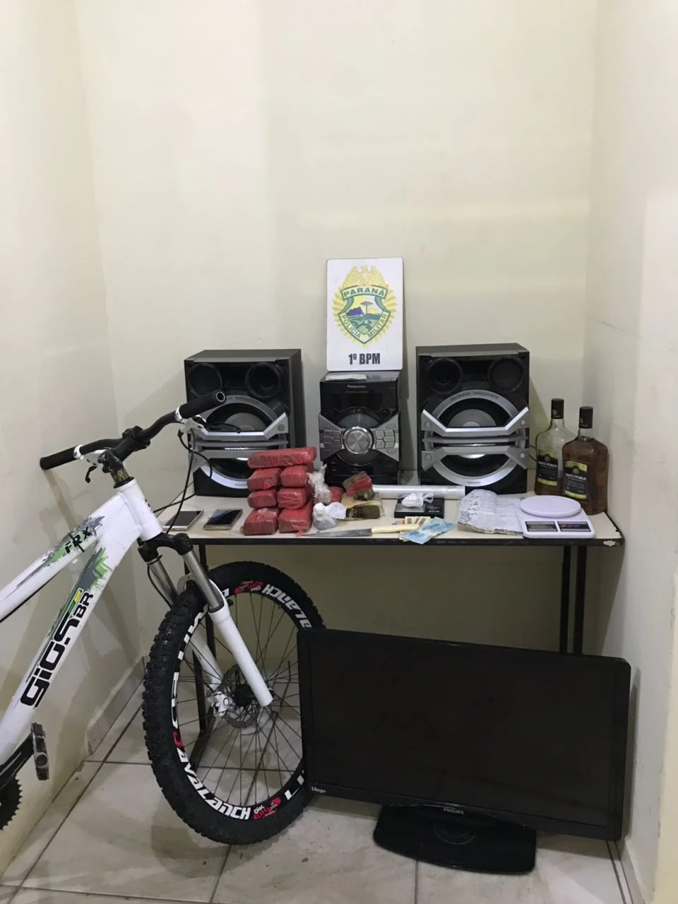 O responsável pelo imóvel, ao perceber a chegada da PM, empreendeu fuga invadindo terrenos de residências vizinhas, não sendo localizado. Ao vistoriar o local, os policiais encontraram aproximadamente 3,8 Kg de maconha e pequena quantidade de cocaína, além de diversos materiais usados para a pesagem e embalo dos entorpecentes, eletrônicos e dinheiro de origem não comprovada.