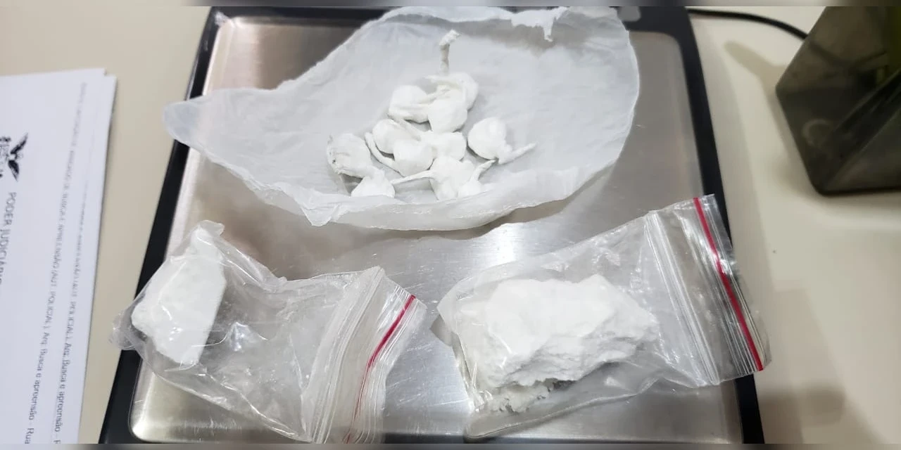 Em um dos endereços autorizados pelo Judiciário, no bairro Chapada, foram apreendidas 26 gramas de uma substância com características de cocaína. O casal que estava na residência, uma mulher de 29 anos e um rapaz, de 25, foram presos em flagrante pelas práticas de tráfico de drogas e associação para o tráfico.