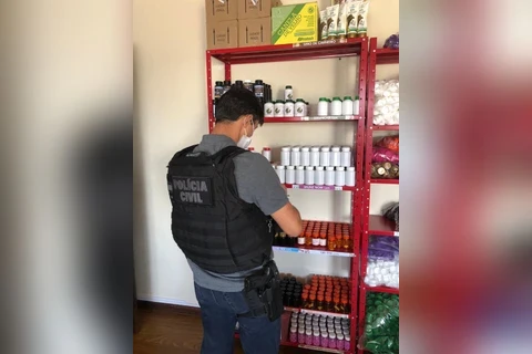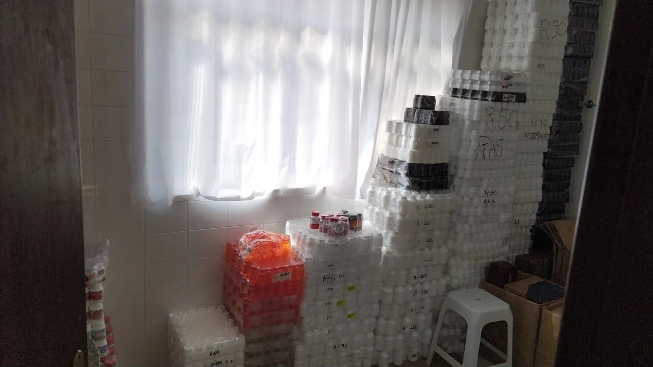 O Delegado disse que o local servia também para o encapsulamento das fórmulas, e que até mesmo a parte gráfica e visual dos produtos aconteciam ali, tudo sem controle e de forma completamente clandestina.