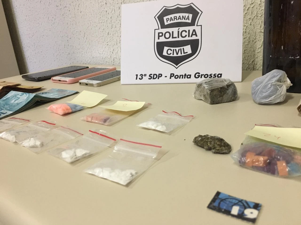 REDAÇÃO/Correio dos Campos - Nesta sexta-feira (30), a Polícia Civil de Ponta Grossa cumpriu três mandados de busca e apreensão na região do bairro Jardim Carvalho. Três pessoas, de 20, 22 e 31 anos, foram presas em flagrante com cocaína, maconha e drogas sintéticas. O grupo é suspeito de comercializar drogas em casas noturnas de Ponta Grossa.