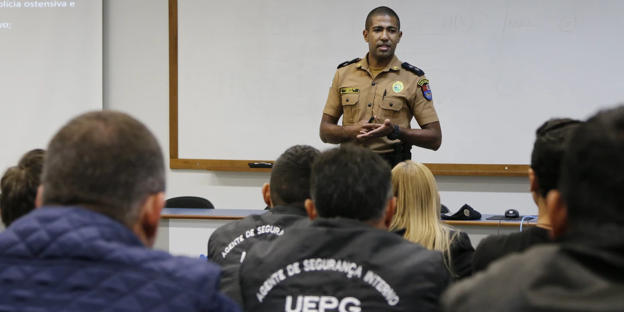 A palestra, ministrada pelo 1º Tenente Adriano Joel de Oliveira, teve por objetivo capacitar os agentes, tanto em aspectos pessoais, quanto na segurança dos demais servidores, acadêmicos, visitantes e patrimônio da UEPG.