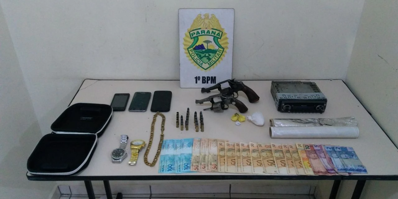 REDAÇÃO/Correio dos Campos - Na madrugada desta quinta-feira (8), durante um patrulhamento de rotina no bairro Boa Vista, localizado em Ponta Grossa, policiais militares avistaram três rapazes em situação suspeita, na Rua David Hilgemberg Júnior. A PM realizou a abordagem e após vistoria no veículo foram encontrados um revólver de calibre 38, munições, além de certa quantidade de crack e cocaína.