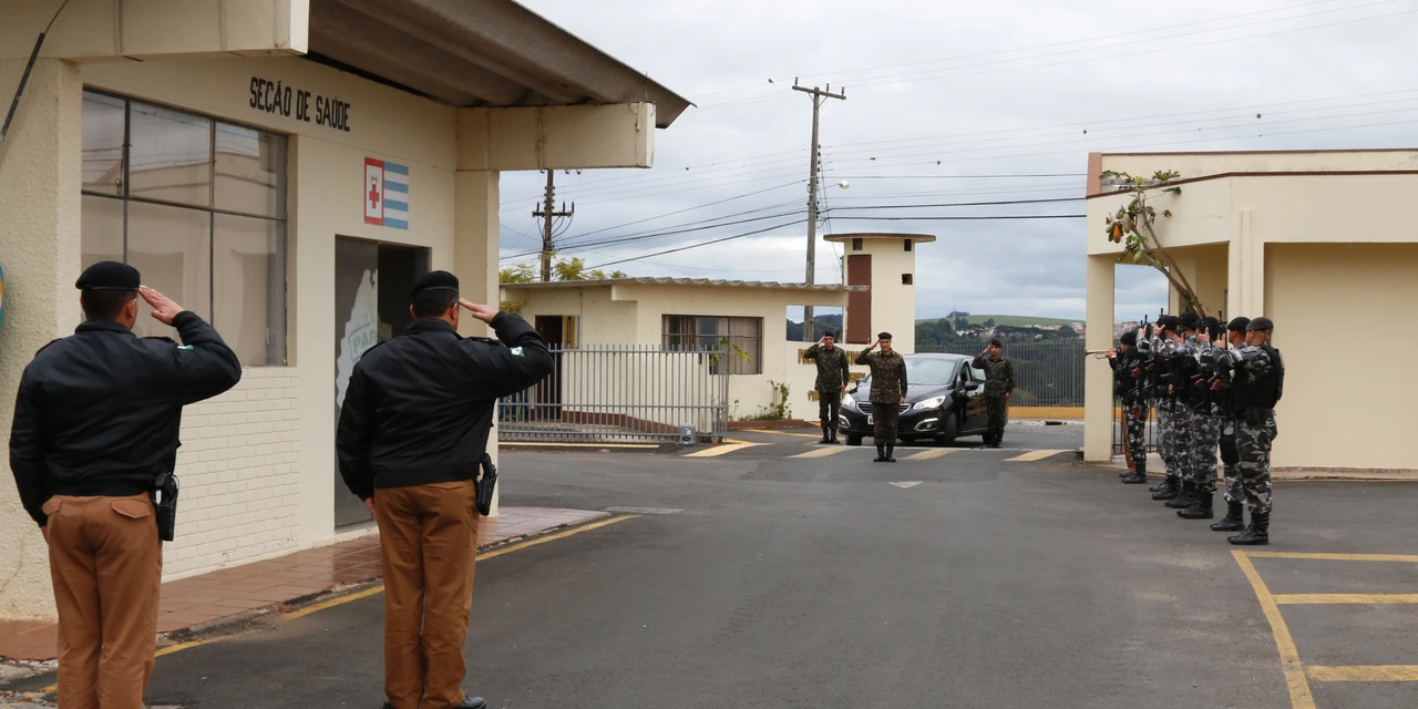 COMUNICAÇÃO/1º BPM - O 1º Batalhão de Polícia Militar, em Ponta Grossa/PR, recebeu na tarde desta segunda-feira (09/07), a visita do Excelentíssimo Senhor Comandante da 5ª Brigada de Cavalaria Blindada, General de Brigada Alcides Valeriano de Faria Júnior. A visita cumpre o cronograma anual de inspeções do Exército às Organizações Policiais Militares.