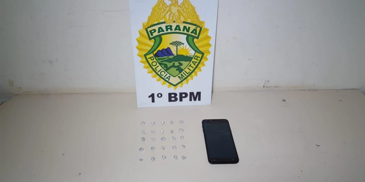 O fato aconteceu por volta de 22h30, na Avenida Balduíno Taques, região central de Ponta Grossa. A mulher de 21 anos e o homem, de 27, foram encaminhados para a delegacia. A droga e o celular foram apreendidos.