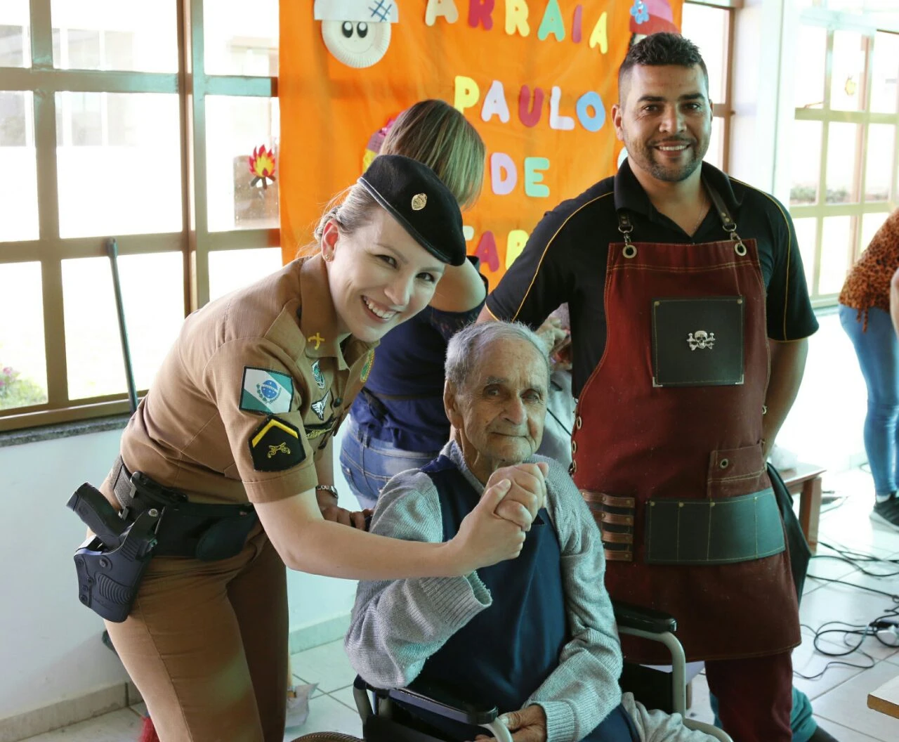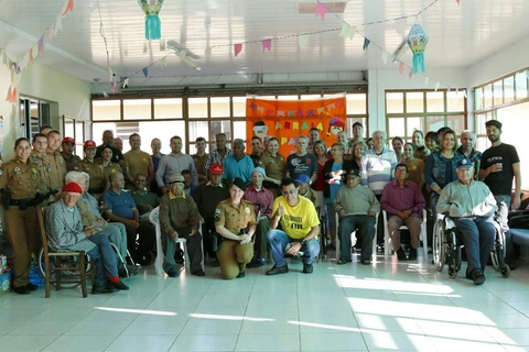 Para bem comemorar os 163 anos de criação da PM no Paraná, e também celebrar a passagem de mais um “Dia dos Pais”, que ocorrerá no próximo domingo (13), Policiais e Bombeiros Militares de Ponta Grossa, da ativa e da reserva, promoveram na tarde desta sexta-feira (11) uma visita à Casa do Idoso “Paulo de Tarso”, asilo que acolhe e assiste homens a partir dos 60 anos de idade.