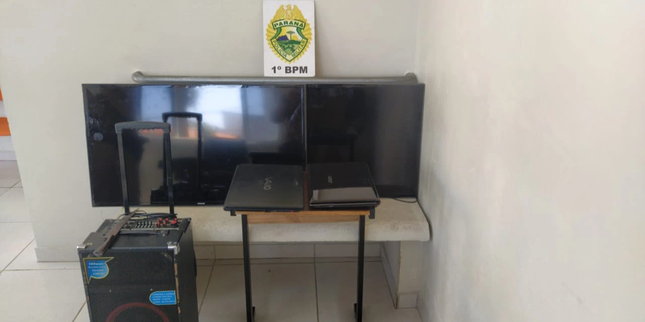 Com o abordado foram localizados duas televisões, dois notebooks e uma caixa de som. Ainda segundo a PM, havia um mandado de prisão em aberto contra o assaltante. O homem foi encaminhado para um hospital da cidade.