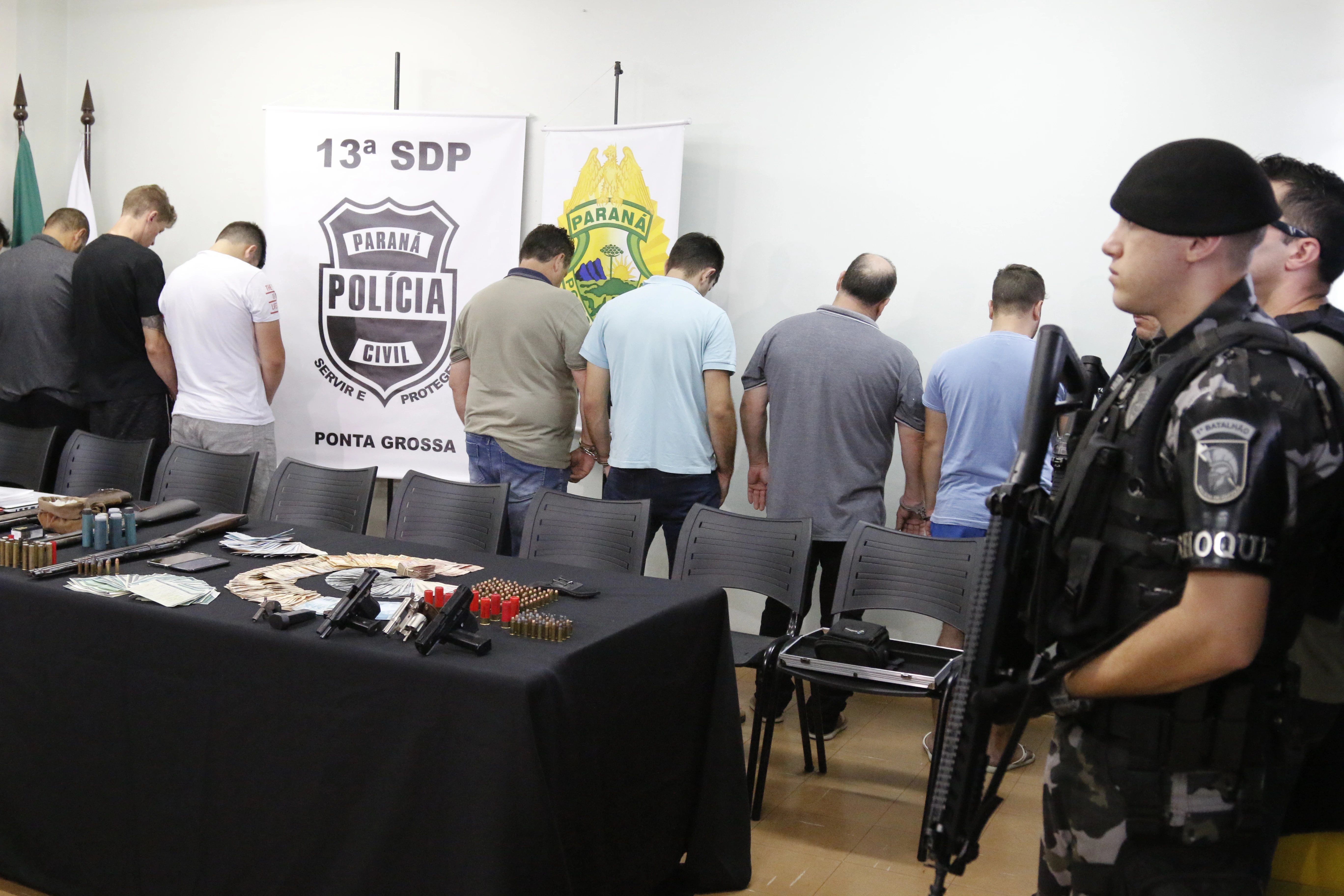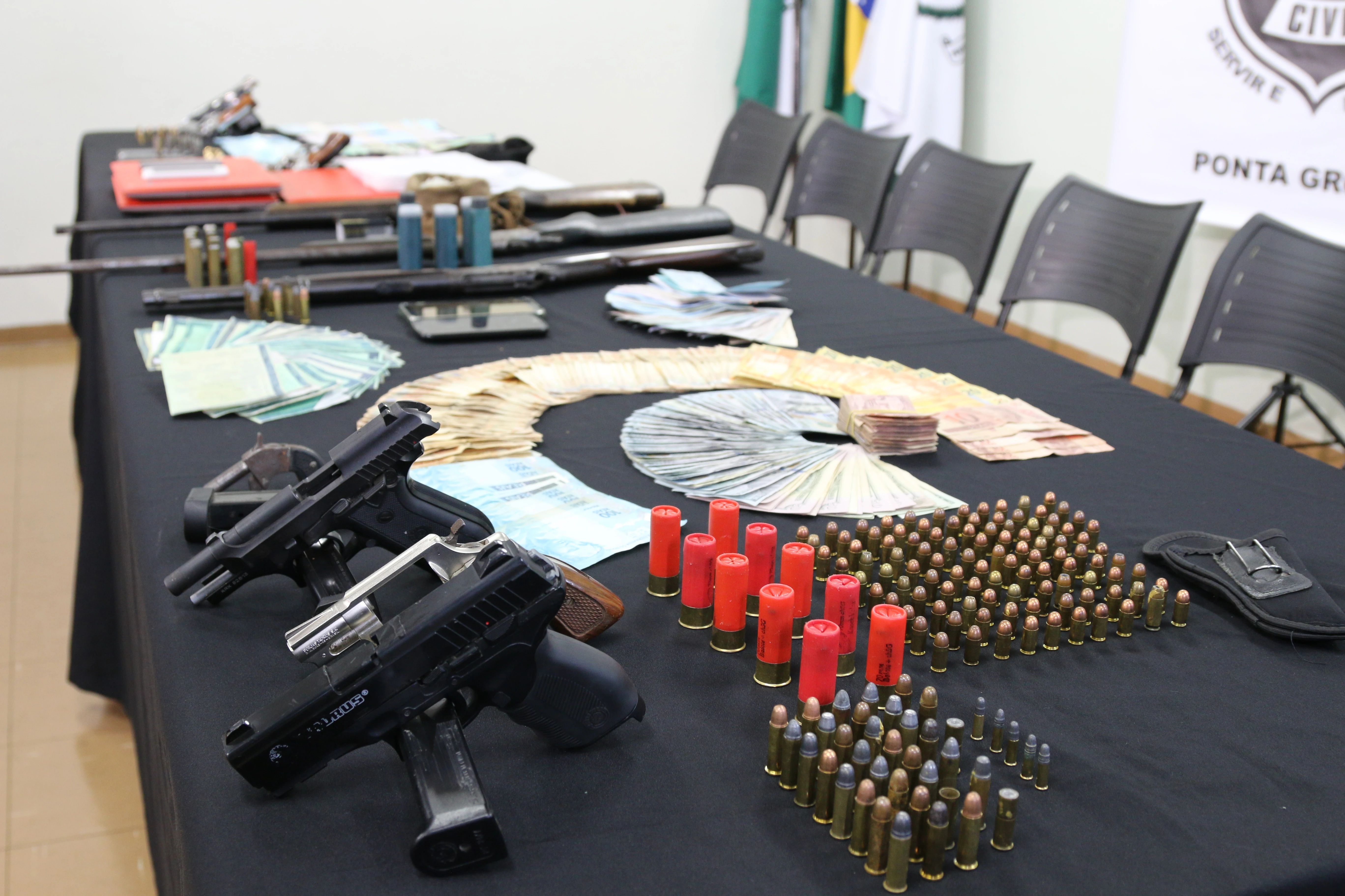 Em entrevista coletiva ocorrida após a operação, foram apresentadas todas as apreensões realizadas junto à quadrilha: oito armas de fogo, munições, sete automóveis e vinte e oito celulares, além de computadores, documentos, e dinheiro (aproximadamente oito mil reais e cerca de seis mil dólares), tudo encaminhado à delegacia do município.