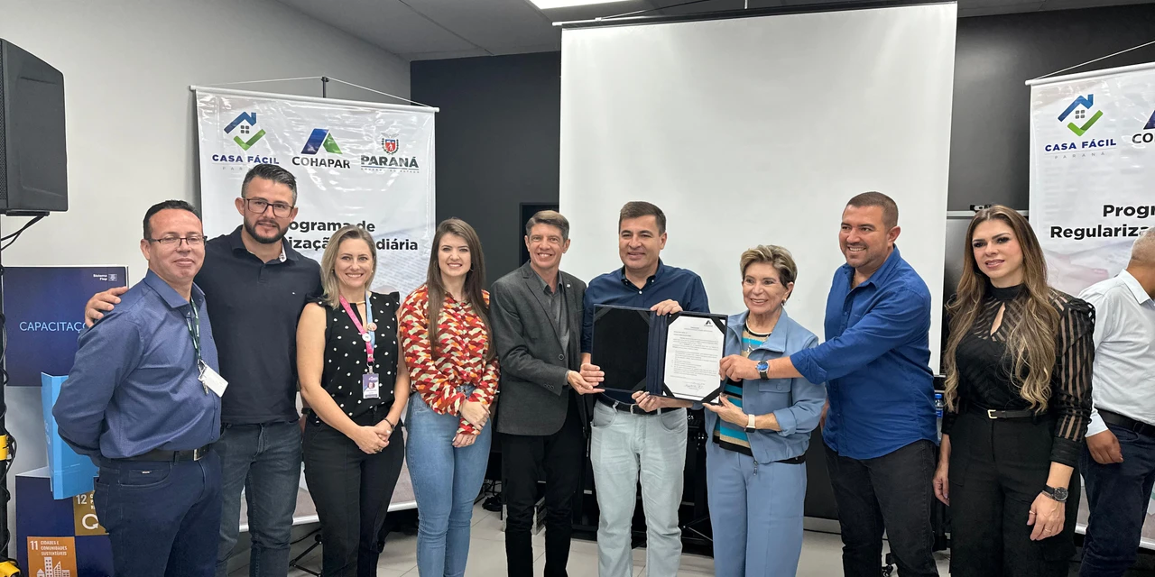 COM ASSESSORIAS - Nesta quinta-feira (9), a Prefeitura de Ponta Grossa fez adesão ao Programa Escritura na Mão, que atua na regularização fundiária, por meio da Companhia de Habitação do Paraná (COHAPAR), do Governo do Estado. A iniciativa se torna mais uma ferramenta para possibilitar que famílias obtenham a documentação do imóvel em que residem.