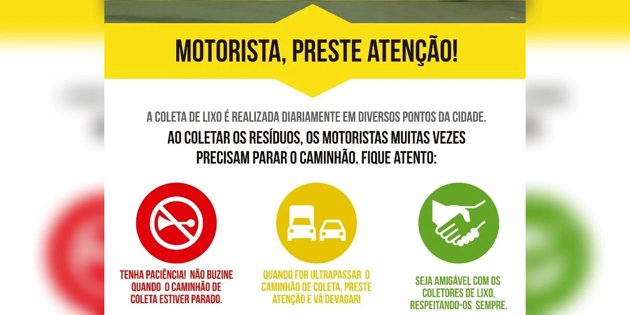 Ao todo, serão distribuídos 500 flyers com mensagens de conscientização, dicas de segurança e alerta sobre a rotina da operação da coleta de lixo, realizada diariamente em diversos pontos da cidade.