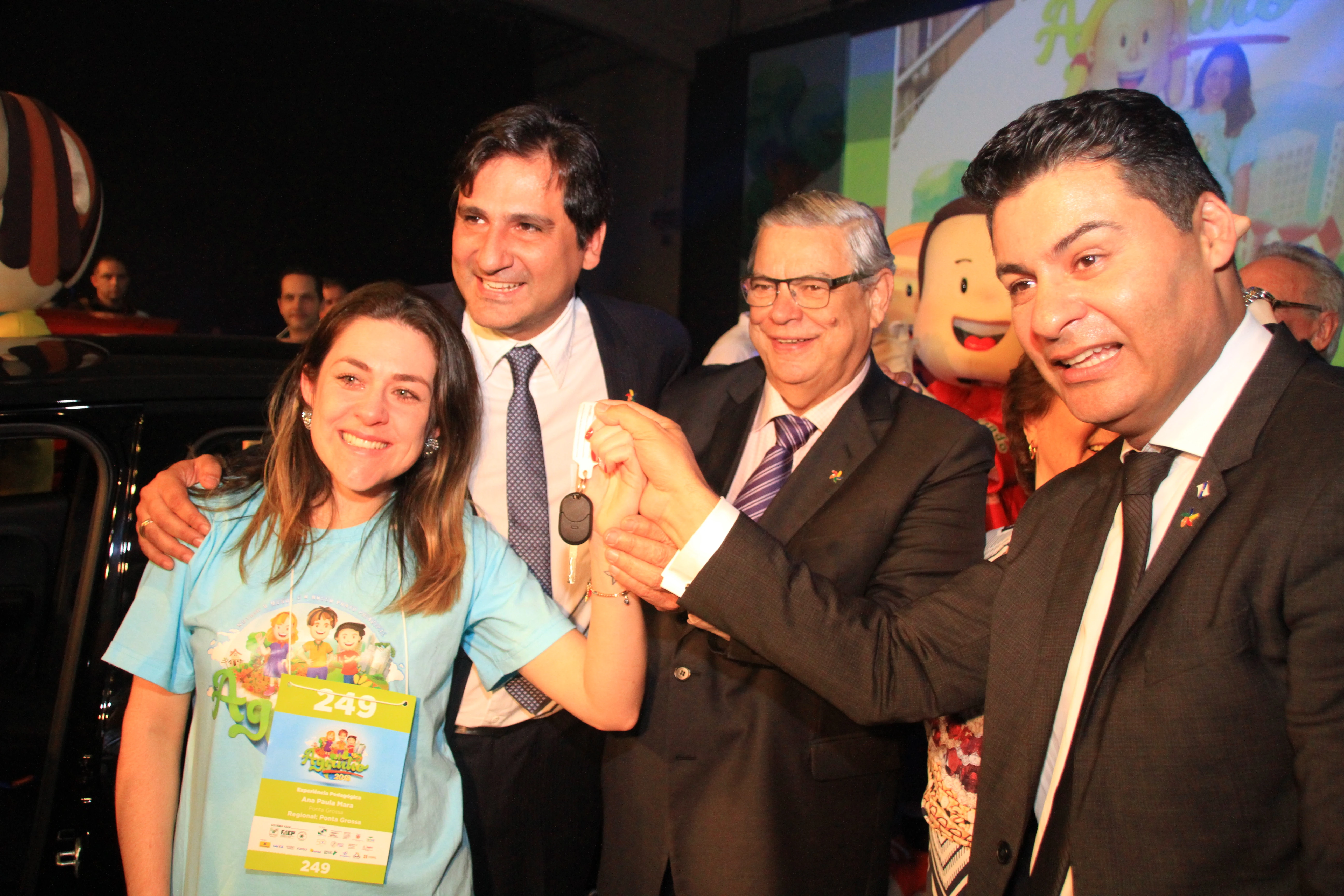Rodrigo K. Silva/Ponta Grossa - Pelo segundo ano consecutivo, Ponta Grossa levou o principal prêmio do Programa Agrinho, realizado pelo Serviço Nacional de Aprendizagem Rural (Senar), com apoio da Federação da Agricultura do Estado do Paraná (Faep). O prêmio, um automóvel zero Km, foi entregue nesta segunda (05) para a professora Ana Paula Mara, da Escola Municipal Prefeito Heitor Ditzel, na Vila Dal Col, durante o encerramento da edição 2018, no Expotrade Pinhais.